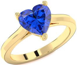 Blue Sapphire Gold Silver Heart Solitaire Engagement Ring