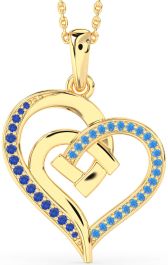 Blue Sapphire & Swiss Blue Topaz Gold Heart Necklace