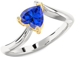 Blue Sapphire White Yellow Gold Heart Solitaire Engagement Ring