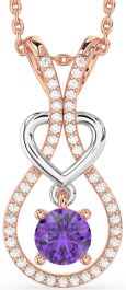 Diamond & Amethyst White Rose Gold Heart Necklace