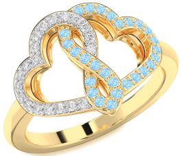 Diamond & Aquamarine Gold Heart Infinity Promise Ring