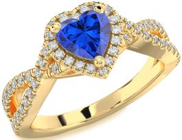 Diamond Blue Sapphire Gold Heart Halo Pave Engagement Ring