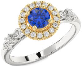 Diamond Blue Sapphire Gold Silver Halo Round Engagement Ring