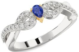 Diamond Blue Sapphire Gold Silver Infinity Pear Promise Ring