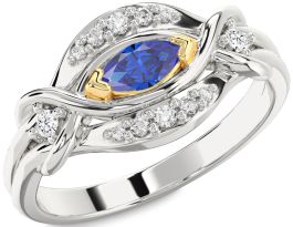 Diamond Blue Sapphire Gold Silver Marquise Promise Ring