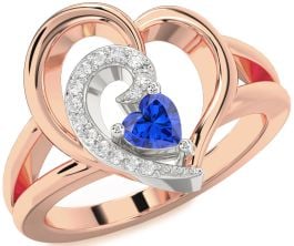 Diamond Blue Sapphire Platinum & Rose Gold Heart Promise Ring