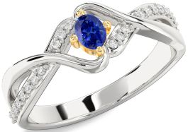 Diamond Blue Sapphire Platinum & Yellow Gold Oval Promise Ring