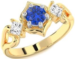 Diamond Blue Sapphire Platinum & Yellow Gold Round Three Stone Engagement Ring