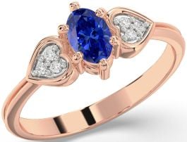 Diamond Blue Sapphire Rose Gold Heart Engagement Ring