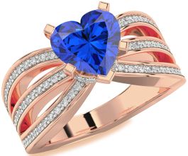 Diamond Blue Sapphire Rose Gold Silver Heart Solitaire Pave Engagement Ring