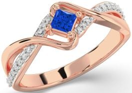 Diamond Blue Sapphire Rose Gold Silver Princess Promise Ring