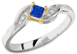 Diamond Blue Sapphire Silver & 10K gold Princess Promise Ring