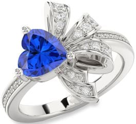 Diamond Blue Sapphire White Gold Heart Pave Promise Ring