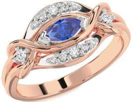 Diamond Blue Sapphire White Rose Gold Marquise Promise Ring