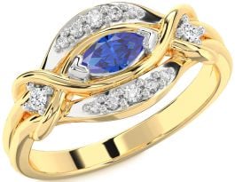Diamond Blue Sapphire White Yellow Gold Marquise Promise Ring