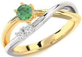 Diamond Emerald Platinum & Yellow Gold Round Promise Ring