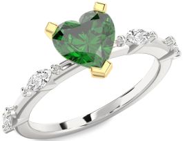 Diamond Emerald White Yellow Gold Heart Engagement Ring