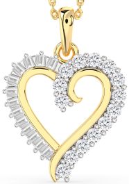 Elegance meets emotion in this graceful heart pendant, where a sweep of dazzling round stones blends seamlessly into a crown of baguette brilliance. The asymmetric flourish adds a contemporary twist to a timeless symbol of love, making this piece a standout expression of affection. Whether for yourself or someone special, it's a radiant reminder of beauty in both balance and contrast.