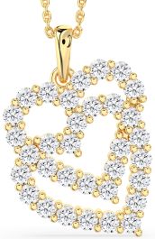 This dazzling pendant captures the essence of affection with two interlocked hearts, each meticulously outlined in a continuous row of brilliant round stones. The larger heart frames the smaller one in a harmonious embrace, symbolizing unity and timeless love. Whether a romantic gesture or a cherished keepsake, this pendant radiates warmth, elegance, and brilliance with every angle and sparkle.