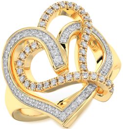 This stunning promise ring features a heartfelt design with two gracefully intertwined hearts, elegantly crafted in polished yellow gold. Each heart is adorned with a dazzling array of brilliant white stones that trace their curves, symbolizing everlasting love and unity. With its radiant sparkle and symbolic design, this promise ring makes a meaningful statement of commitment and devotion.