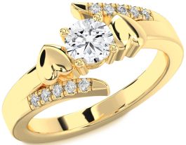 Whimsical and romantic, this engagement ring features a luminous center stone embraced by two polished heart motifs, creating a sweet and symbolic design. Sparkling accents line the split band, adding brilliance and charm to its playful elegance. A celebration of affection and joy, this ring beautifully captures the spirit of love in its most heartfelt and tender form.