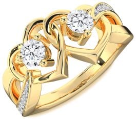This radiant Promise ring showcases round-cut gemstones—one brilliant white and one vivid yellow—set within intertwined open heart frames. Crafted in yellow gold and accented by a tapered row of sparkling white diamonds on each side, this symbolic design celebrates love, loyalty, and cherished memories, making it a meaningful keepsake for any special occasion or heartfelt commitment.