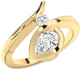 This modern Promise ring exudes artistic elegance with its distinctive asymmetrical design. A bezel-set pear-cut diamond is nestled within a sculptural gold frame, while a vibrant yellow round-cut gemstone adds a playful accent above. Crafted in polished yellow gold, this Promise ring symbolizes a bold and unique commitment that stands out with style and sentiment.