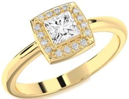 Classic with a bold twist, this engagement ring features a brilliant square center framed by a halo of shimmering accents. The sharp lines of the cushion-shaped frame contrast beautifully with the soft glow of the polished band, creating a look of timeless elegance. This design speaks to a love that is both structured and radiant, capturing the perfect harmony of strength and grace.
