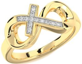 Diamond Gold Silver Infinity Cross Ring