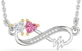 Full of passion and energy, this pendant intertwines the infinity symbol with two radiant heart-shaped gems and a heartbeat motif, capturing love in its most electrifying form. One heart shines in icy brilliance, the other in bold violet—together, they represent balance and connection. True love doesn’t just last—it pulses and lives in every heartbeat.