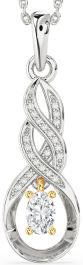 Intertwining ribbons of gold shimmer with a sweep of glistening stones in this beautifully sculpted pendant. The elegant loops lead the eye to a captivating oval-cut centerpiece, cradled gently at the base. With a design that evokes grace and continuity, this piece is a timeless expression of beauty, making it perfect for both everyday elegance and heartfelt gifting.