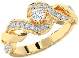 This Promise ring showcases a graceful, ribbon-like design in radiant yellow gold, flowing elegantly around a brilliant round center stone. Accented with a sparkling row of pavé diamonds, the twisted band adds dimension and brilliance from every angle. The romantic, intertwined style symbolizes unity and enduring devotion, making it a heartfelt Promise ring for a lasting bond.