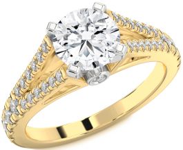 Diamond Gold Silver Round Solitaire Pave Engagement Ring