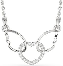 Diamond Platinum Heart Wings Interlock Necklace