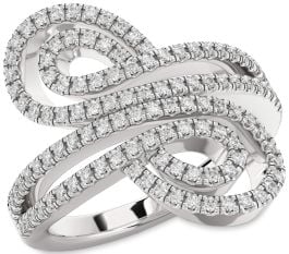 This captivating promise ring dazzles with an artistic swirl of golden curves encrusted in brilliant round-cut white stones. The openwork infinity-inspired design symbolizes a love that flows endlessly, creating an enchanting sparkle from every angle. A promise ring that gracefully celebrates enduring devotion with bold elegance and timeless charm.