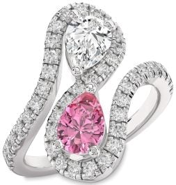 Celebrate love and connection with this enchanting Promise ring, featuring a romantic pink and vibrant blue pear-shaped gemstone embraced by an elegant yellow gold bypass band. The entire design is beautifully framed by a cascade of dazzling round-cut accent stones, creating a graceful silhouette. A meaningful symbol of everlasting commitment and shared dreams.