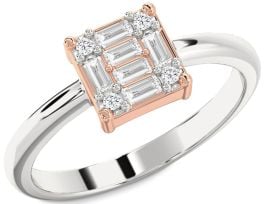 Diamond Platinum & Rose Gold Baguette Promise Ring