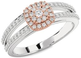 Diamond Platinum & Rose Gold Halo Round Promise Ring