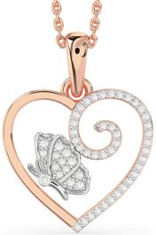 Diamond Platinum & Rose Gold Heart Butterfly Necklace