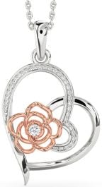 Diamond Platinum & Rose Gold Heart Flower Necklace