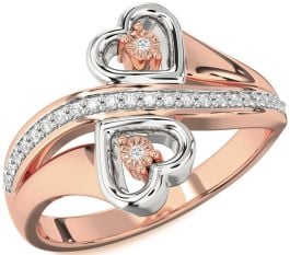 Diamond Platinum & Rose Gold Heart Two Stone Ring