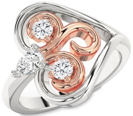 Diamond Platinum & Rose Gold Heart Three Stone Ring