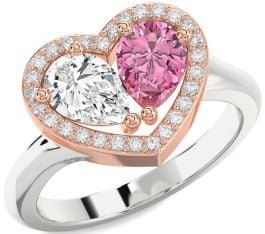 Diamond Platinum & Rose Gold Heart Two Stone Promise Ring
