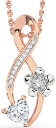 Diamond Platinum & Rose Gold Infinity Heart Flower Necklace