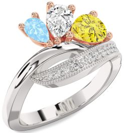 Diamond Platinum & Rose Gold Pear Three Stone Mother's Ring