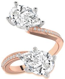 Diamond Platinum & Rose Gold Pear Two Stone Pave Ring