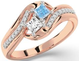 Diamond Platinum & Rose Gold Princess Two Stone Promise Ring