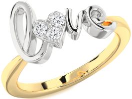 Celebrate affection with this expressive promise ring, where the word "Love" is crafted in flowing gold script, integrating into the band. At the center lies a heart shape adorned with three vibrant gemstones—blue, pink, and white—each representing a unique bond and cherished memory. The colorful palette and meaningful inscription make this promise ring a heartfelt symbol of devotion.