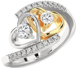 Diamond Platinum & Yellow Gold Heart Two Stone Ring