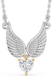 Diamond Platinum & Yellow Gold Heart Wings Necklace